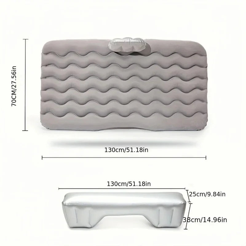 Ovaj višenamenski dušek za zadnje sedište automobila pruža izvanrednu udobnost i sigurnost. Bočni jastuci štite glavu i ublažavaju udarce tokom vožnje po neravnom terenu ili pri naglom kočenju. Njegov dizajn s talasastim šarama ravnomerno raspoređuje težinu, pružajući stabilnu podršku poput pravog kreveta. Izrađen od flokanog materijala, prijatan je za kožu, prozračan i izdržljiv. Zahvaljujući T-oblikovanoj potpori i čvrsto zaptivenim ivicama, dušek ne gubi vazduh, garantujući stabilnost satima. Standardne dimenzije (135x70 cm) omogućavaju da se lako uklopi u većinu automobila s četiri ili više sedišta.